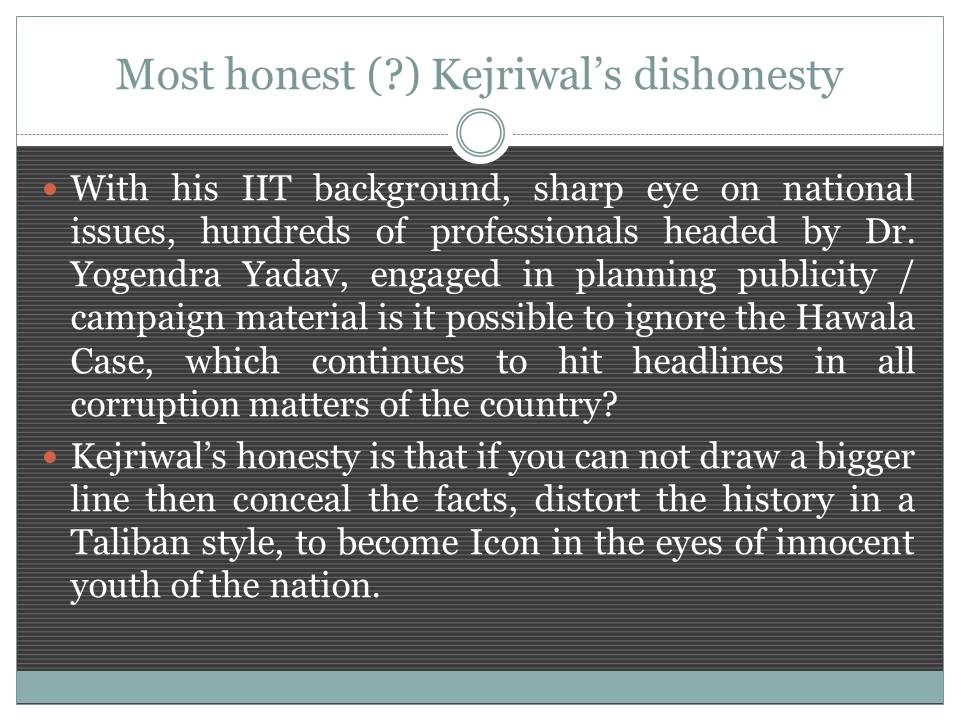 Here is a presentation I received via email on truth about Kejriwal worth noting.
